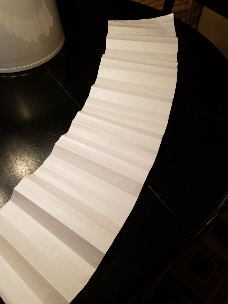How close together you draw or fold your lines will determine how skinny or wide your fabric strips will need to be. With almost every lampshade, there will be a slight flare at the base. If you don’t pre-mark your lines and just sew straight cuts of fabric together, you would end up with your fabric slanting all the way around.