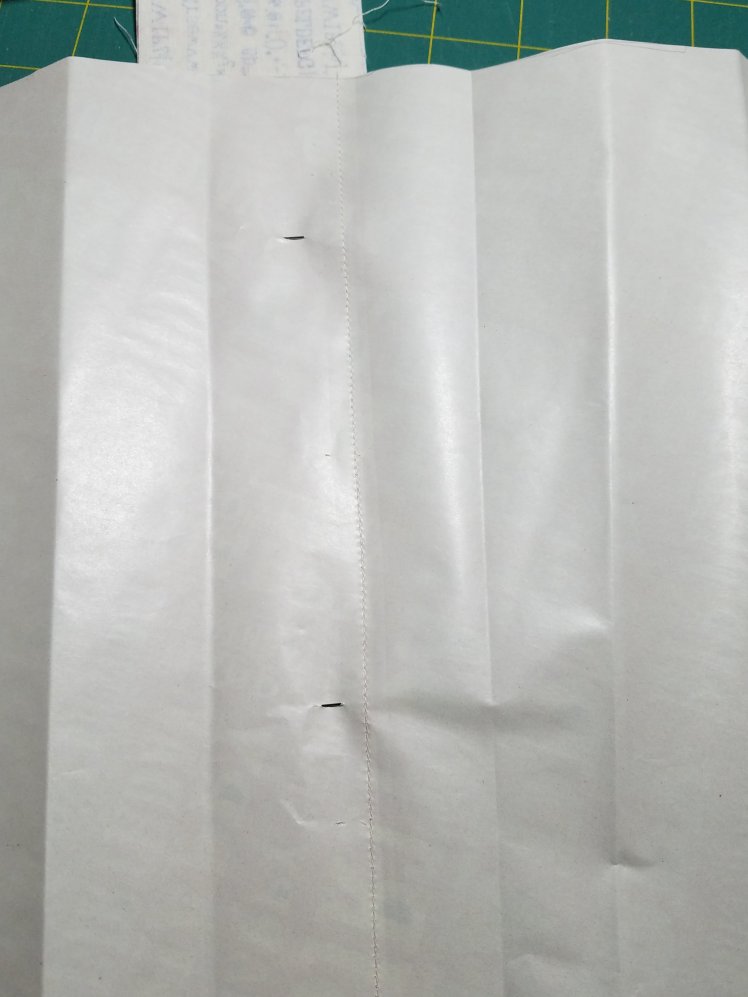 Next, we need to mark sewing lines on the template. You have two choices: you can either draw your stitching lines with a ruler or you can fan fold and make creases to mark your stitching lines like this: