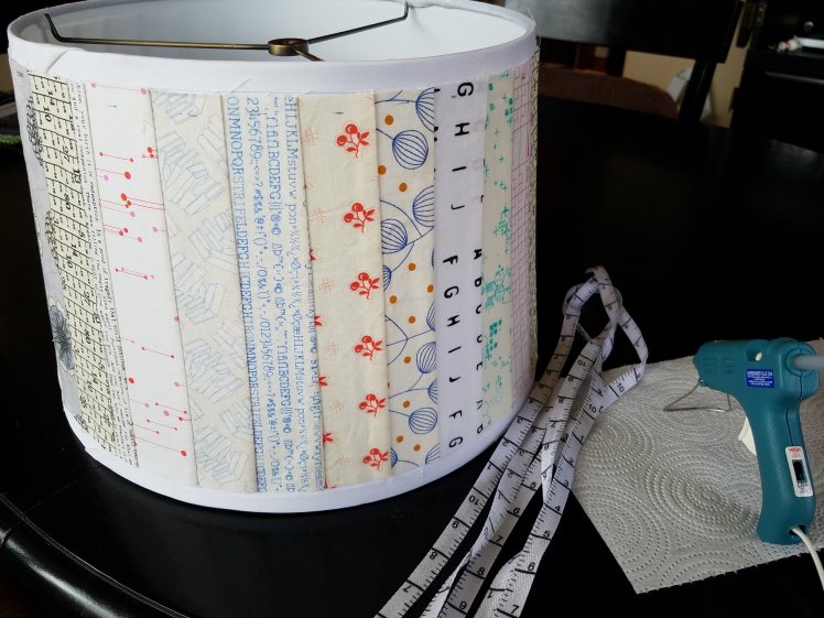 - fabric strips of your choosing – low volume only for me! as many as you need to go around your lampshade