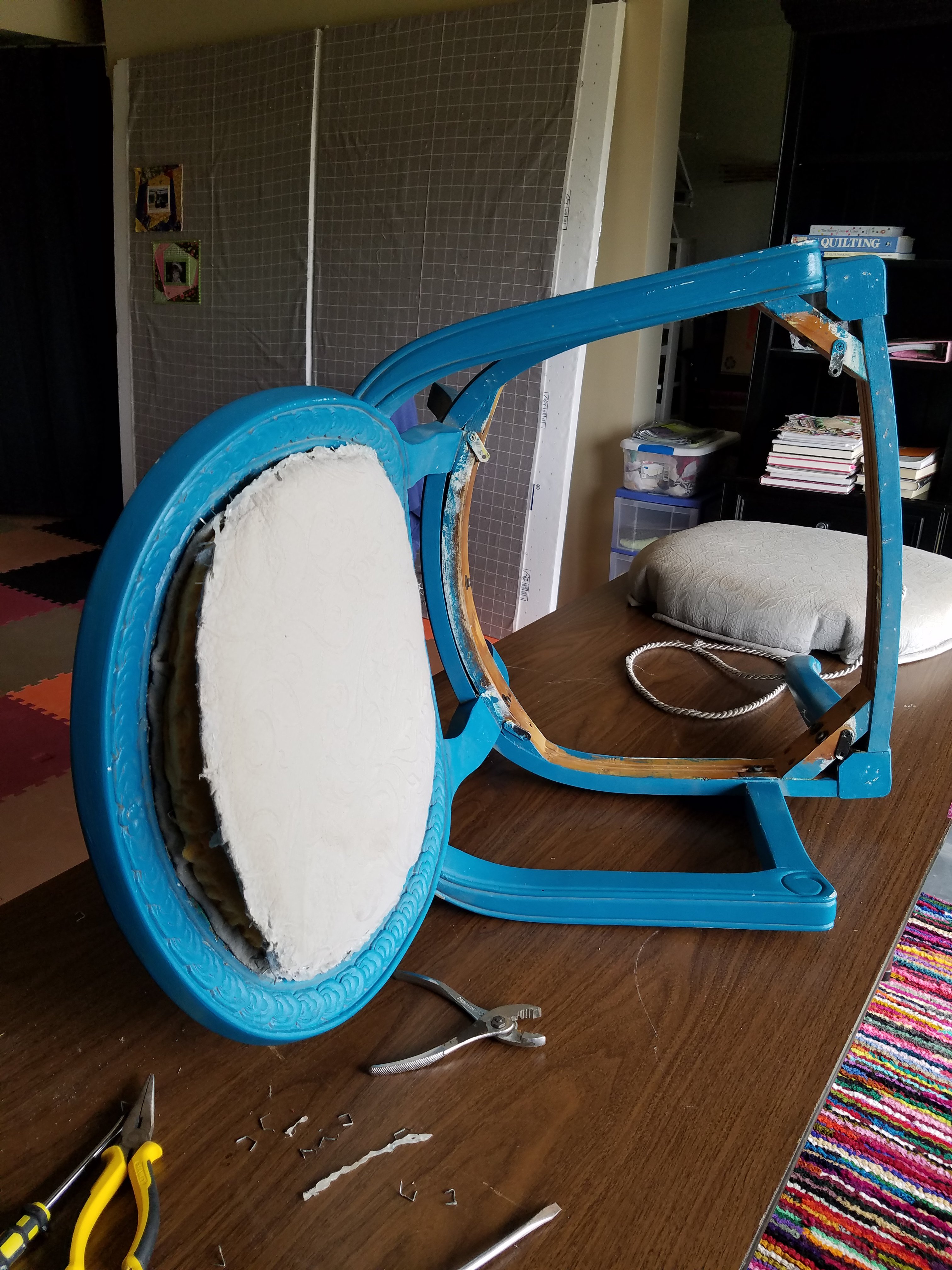 O.k., here it is! I think it turned out pretty good and it looks like it might have been made just for this spot in my studio. It matches that chair pretty purr-fectly! (I couldn’t resist.) I might just keep it there!