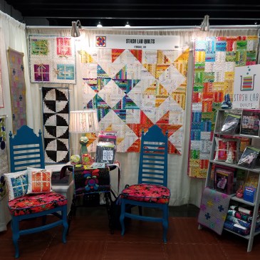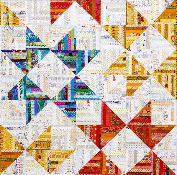 This new pattern might look a little familiar – it’s a variation on my string quilt project “Rock Star” featured in the String Theory Lab Manual. A re-boot, if you will! Similar layout, different finished sizes, and no string piecing but using single fabrics instead. Here’s the Rock Star string quilt version…